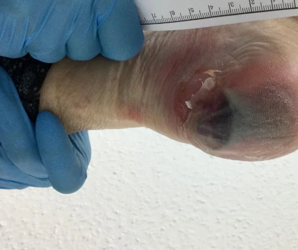 Kulit di sekeliling luka mula menjadi merah, coklat, atau kehitaman.