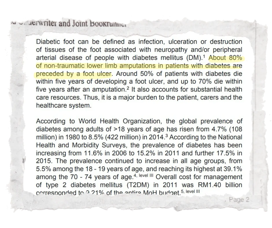 80% kes amputasi (potong) kaki pada pesakit diabetes adalah bermula dengan luka.